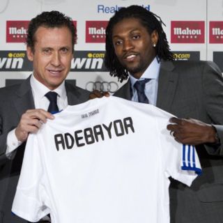MADRID, ESPAÑA (27/ENE/2011).- Emmanuel Adebayor, último fichaje del Real Madrid, afirmó hoy durante su presentación oficial que no ha llegado al conjunto blanco para "echar a Karim Benzema", su rival por el puesto en la delantera.