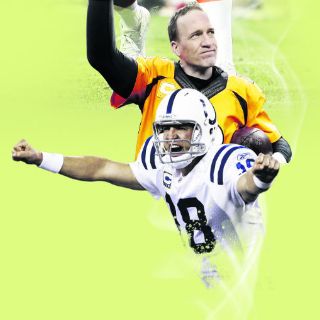 Un quarterback estelar disponible de manera inusual en el mercado en 2012, Manning se volvió a asentar en Denver, donde, a pesar de la debilidad en el brazo derecho por un daño en un nervio, tuvo marca de 50-15 y ganó su quinto premio como Jugador Más Valioso de la NFL, así como presencias en el Super Bowl en cuatro temporadas.