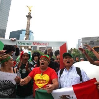 Aficionados capitalinos celebran en el Ángel victoria del Tri