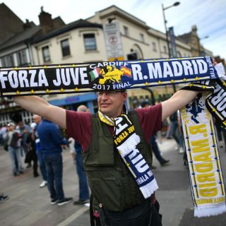 En las calles de la ciudad resonaba el "Juve, storia di un grande amore", himno oficial del equipo italiano, y el clásico himno madridista junto al "Qué viva España", tan popular entre los seguidores españoles, al tiempo que los hinchas compartían pintas, se fotografiaban juntos e intercambiaban bufandas.