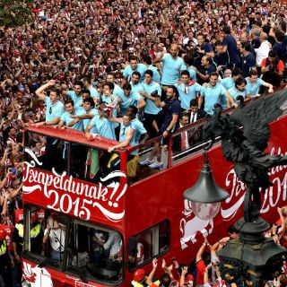 Athetic de Bilbao este martes abarrotaron las calles de la ciudad española para homenajear y celebrar el título de la Supercopa de España, trofeo que el equipo consiguió ayer lunes en el Camp Nou tras imponerse