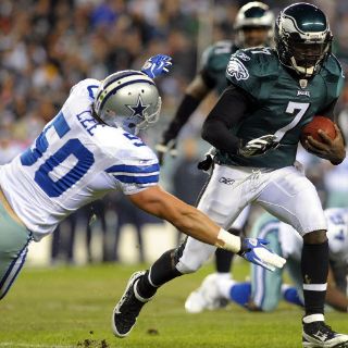 FILADELFIA, ESTADOS UNIDOS (31/OCT/2011).- El mariscal de campo Michael Vick completó anoche 21 de los 28 envíos que ejecutó para una ganancia de 279 yardas, con dos de anotación, y eso bastó para encaminar a Águilas de Filadelfia a un triunfo sobre Vaqueros de Dallas por paliza de 34-7.