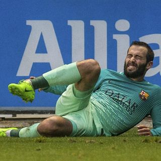 El jugador del Barcelona abandona el campo de juego sobre una camilla