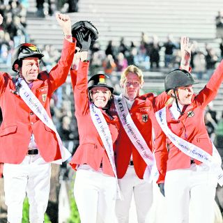 En los Juegos Mundiales de Equitación, la selección germana, con dos amazonas como integrantes de la misma, obtuvo la medalla de oro por equipos