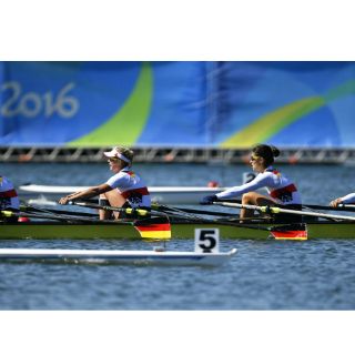 Las alemanas Annekatrin Thiele, Carina Baer, Julia Lier y Lisa Schmidla, que en 2015 tuvieron que conformarse con la plata en el Mundial pero este año se adjudicaron el título europeo y un oro en la Copa del Mundo de Poznan, completaron los dos mil metros en la Lagoa Rodrigo de Freitas con un tiempo de 6:49.39.