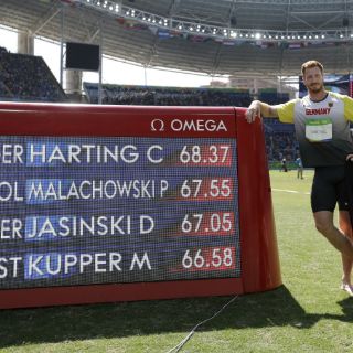 Harting se hizo acreedor a la medalla en el último de los seis intentos a los que tenía derecho, donde consiguió el mejor registro de su carrera al alcanzar una distancia de 68.37 metros.