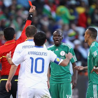 RICHARDS BAY, SUDÁFRICA (20/JUNIO/2010).- El mediocampista de la Selección de Nigeria, Sani Kaita, declaró que tras la expulsión que sufrió el pasado jueves en el partido que su equipo perdió 1-2 ante Grecia, ha recibido amenazas de muerte.