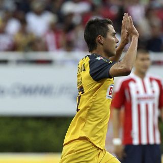 GUADALAJARA, JALISCO (08/ABR/2012).- Cuando todo parecía que el Clásico nacional terminaría igualado 0-0, Paúl Aguilar terminó por fulminar las pocas esperanzas que tenían los aficionados rojiblancos de Liguilla, ya que la igualada no era un mal resultado, pero la derrota sí. Los de Coapa llegaron a 25 unidades y amarraron pase a la Liguilla; Chivas se quedó con 15 puntos.