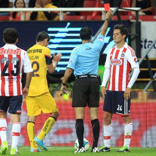 La ya criticada actuación del silbante José Alfredo Peñaloza terminó por ser muy cuestionada al expulsar a Sergio Pérez por segunda tarjeta amarilla, al minuto 35, para así permitirle a las Aguilas sacudirse del dominio tapatío.