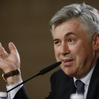 El técnico italiano, acompañado del director de relaciones institucionales del club, Emilio Butragueño, tuvo que responder hasta en dos ocasiones cuestiones referentes al anterior entrenador madridista.