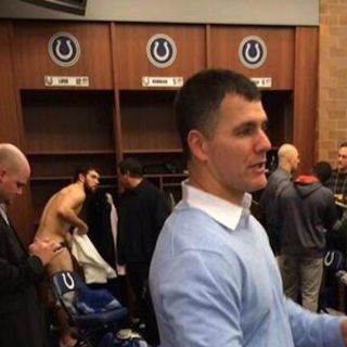 Twitter una fotografía en el vestidor de su equipo, donde se puede observar al mariscal estelar, Andrew Luck, prácticamente desnudo.