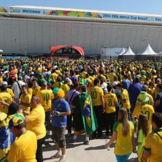 Mundial de Brasil 2014, han sido abiertas. Miles de aficionados brasileños y croatas comienzan a ocupar sus asientos.