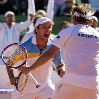 BUENOS AIRES, ARGENTINA (06/ABR/2013).- Argentina ganó hoy a Francia el tercer punto de la serie de cuartos de final de la Copa Davis, el mejor resultado en dobles en la historia de su participación en el torneo, y se impone por 2-1.