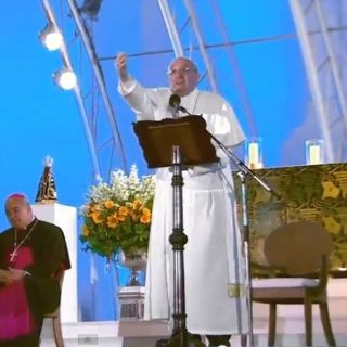 "O Papa esta con voce" (el papa está con ustedes), y aparece una bandera argentina ondeando.