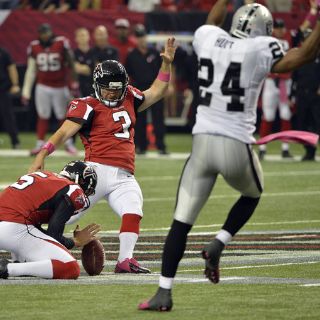 ATLANTA, GEORGIA (14/OCT/2012).- Matt Bryant consiguió el domingo su segundo gol de campo para ganar un partido en tres fechas, esta vez de 55 yardas con un segundo en el reloj, para que los Halcones de Atlanta siguiesen invictos con una victoria de 23-20 ante los Raiders de Oakland.