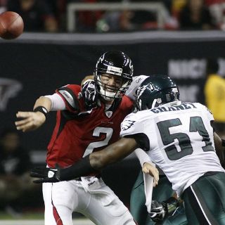 ATLANTA, ESTADOS UNIDOS (19/SEP/2011).- El mariscal de campo Matt Ryan completó 17 de sus 28 pases para una 'magra' ganancia de 195 yardas con cuatro lanzamientos de touchdown, con los cuales guió a Halcones de Atlanta a un triunfo sobre Aguilas de Filadelfia por 35 a 31.