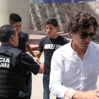 GUADALAJARA, JALISCO (03/ABR/2014).- Los jugadores de Atlas, Alfonso González, Antonio Briseño y Jahir Barraza, acudieron a visitar a algunos de los policías que resultaron lesionados en la trifulca que se presentó en el pasado
