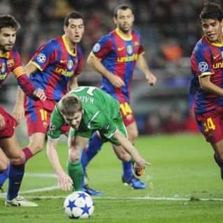 MADRID, ESPAÑA (07/DIC/2010).- El Schalke 04 de Raúl, el FC Barcelona de Pep Guardiola, el Manchester United de Rooney y el Tottenham de Defoe, autor hoy de dos goles, pasaron a los octavos de final de la Liga de Campeones como líderes de grupo.