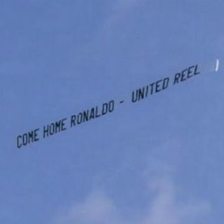 La aeronave fue alquilada por fanáticos del Manchester United y en ella, se podía leer una pancarta con la leyenda: "Regresa a casa Ronaldo" y firmada por la afición de los ''Red Devils''.
