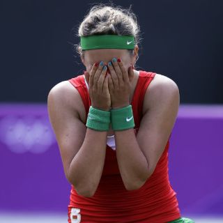 LONDRES, INGLATERRA (04/AGO/2012).- Victoria Azarenka, número uno mundial, obtuvo la medalla de bronce del torneo olímpico individual femenino de tenis, este sábado en Wimbledon, al derrotar por 6-3 y 6-4 a la rusa Maria Kirilenko.