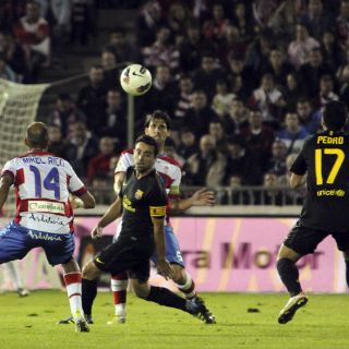 Eso no impidió que Messi, Cuenca, Xavi, Pedro, con la cabeza, y hasta Abidal probaran a Roberto en la primera media hora, antes de que Xavi firmara el 0-1 (minuto 32) justo cuando el Granada estaba empezando a quitarse los complejos y a querer tener el balón.