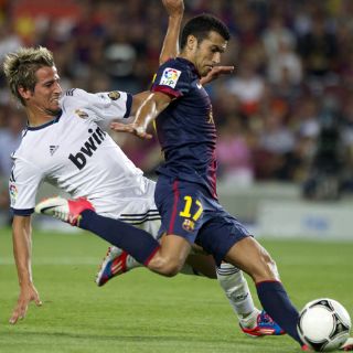 Apenas un minuto después, Mascherano enviaba un pase largo de izquierda a derecha, donde Pedro se fue en velocidad superando a Fabio Coentrao para marcar el empate ante la salida de Casillas (56).