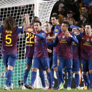 Los goles del triunfo fueron obra de Xavi Hernández, quien abrió la cuenta a los 10 minutos, el argentino Lionel Messi firmó un doblete a los 12 y 86, éste de penal, y del chileno Alexis Sánchez 75. Ruben Castro (32) y el paraguayo Roque Santa Cruz (52), consiguieron el empate momentáneo.