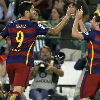 SEVILLA, ESPAÑA (30/ABR/2016).- El Barcelona ganó 0-2 al Real Betis sin brillantez y con un discreto partido, aunque no pasó apuros para retener el liderato en su lucha por la Liga con el Atlético y el Real Madrid, frente a un equipo verdiblanco que jugó casi una hora con diez por la expulsión del alemán Westermann en el minuto 35.