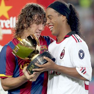Ambos equipos jugaron a media máquina, pero el partido sirvió para homenajear a Ronaldinho en su regreso al Camp Nou. Ronaldinho posó con sus ex compañeros con el trofeo al final del encuentro.