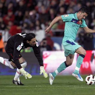 MALLORCA, ESPAÑA (26/FEB/2011).- El líder Barcelona confirmó su recuperación con una nueva victoria, esta vez en el terreno del Mallorca (3-0), el sábado en la 25ª jornada de la Liga española, en la que marcaron tres de sus figuras ofensivas, el argentino Lionel Messi (38), David Villa (57) y Pedro (66).