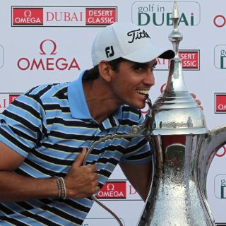 DUBAI, EMIRATOS ÁRABES UNIDOS (12/FEB/2012).- El español Rafael Cabrera-Bello exhibió aplomo ante rivales de mayor trayectoria al alzarse el domingo con el título del Dubai Desert Classic de golf al firmar una última ronda de 68 golpes, cuatro bajo par.