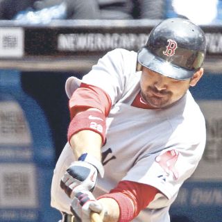 El segunda base Dustin Pedroia (5) y el antesalista Kevin Youkilis (9) también hicieron sonar los maderos contra la novena canadiense.