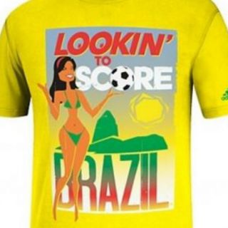 Una de las camisetas tiene la imagen de un corazón con un bikini tipo hilo dental con la expresión "yo (corazón) Brasil", y otra presenta el dibujo de una mujer esbelta con la frase en inglés "Lookin' to score in Brasil", que se puede traducir libremente como "buscando una conquista en Brasil".