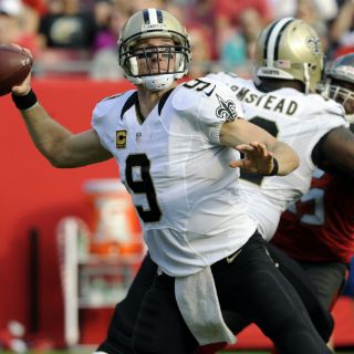 Brees completó 31 de 41 pases para 312 yardas, sin intercepciones. Colston anotó tras recepciones de 1 y tres yardas en el primer tiempo para los Santos (5-8).