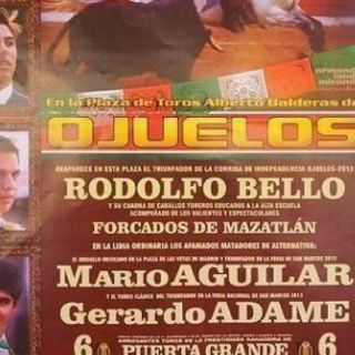 OJUELOS, JALISCO (17/SEP/2013).- El rejoneador Rodolfo Bello y los diestros Mario Aguilar y Gerardo Adame, todos mexicanos, se repartieron seis orejas en la corrida de las Patrias, celebrada esta tarde en la plaza de Ojuelos, en Jalisco.