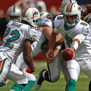 MIAMI, FLORIDA (04/DIC/2011).- Reggie Bush corrió para 100 yardas y un touchdown el domingo y el antes deplorable equipo de los Delfines de Miami ganó por cuarta ocasión en los pasados cinco encuentros al batir 34-14 a los Raiders de Oakland.