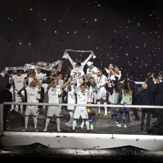 El domingo por la noche, la fiesta continuaba en el Estadio Santiago Bernabéu, con las gradas llenas.