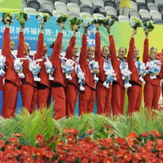 Con Anastasia Davydova, Maria Gromova, Natalia Ischenko, Elvira Khasyanova, Svetlana Koleshnichenko, Daria Korobova, Aleksandra Patskevich, Svetlana Romashina, Alla Shishkina y Anzhelina Timanina, Rusia recibió una nota de 49,180 en la apreciación técnica y de 42,290 en la artística para sumar un total de 98,470 puntos.
