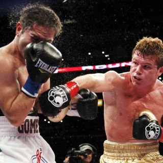 'El Canelo' fue muy superior al 'Contender' Gómez, quien cayó a la lona en el primer round tras recibir una combinación a la cabeza y se reincorporó al conteo del réferi Wayne Hedgepeth para seguir la pelea.