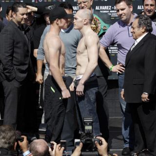 El límite superwelter indica 154 libras, pero Saúl y Matthew firmaron un contrato para no sobrepasar 150 lbs, en el que falló Alvarez al registrar 151.8 lbs en el primer intento y 151.4 en el segundo y definitivo pesaje esta tarde en el estacionamiento de la arena.
