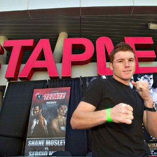 LOS ÁNGELES, CALIFORNIA (18/SEP/2010).- El campeón jalisciense Saúl "Canelo" Álvarez subirá en unos instantes más al encordado del Staples Center de Los Ángeles, donde defenerá su corona plata de peso superwelter ante el argentino Carlos Baldomir.