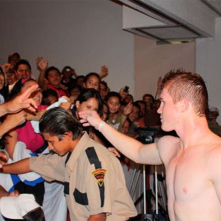 VERACRUZ (01/DIC/2010).- “Dejé sin comer a mi marido para venir contigo”, fue el primer saludo de una de las aficionadas presentes en el World Trade Center de Veracruz durante el entrenamiento público que ayer por la tarde realizó el boxeador jalisciense Saúl “Canelo” Álvarez en el Puerto Jarocho.