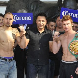 CIUDAD DE MÉXICO (25/NOV/2011).- El mexicano Saúl 'Canelo' Álvarez, campeón mundial de peso superwelter del Consejo Mundial de Boxeo (CMB), y el puertorriqueño Kermit Cintrón cumplieron hoy con el pesaje oficial un día antes su enfrentamiento, mañana en la Paza de Toros México, sur de la ciudad.