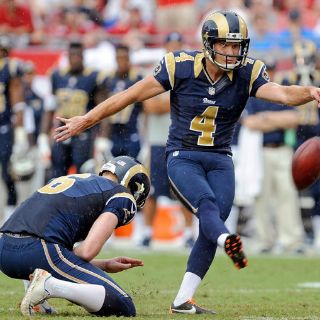 TAMPA BAY, FLORIDA (14/SEP/2014).- El pateador Gregg Zuerlein se vistió de héroe en el triunfo de su equipo, Carneros de San Luis (1-1), de visita en la casa de Bucaneros (0-2), al marcar gol de campo de último minuto que puso el definitivo 19-17.