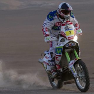 ANTOFAGASTA, CHILE (09/ENE/2011).- El piloto chileno Francisco 'Chaleco' López (Aprilia) se llevó la séptima etapa de motos del Dakar, entre Arica y Antofagasta, en la que el español Marc Coma (KTM) quedó tercero y sigue líder en la general.