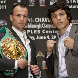 LOS ÁNGELES, CALIFORNIA (03/JUN/2011).- El mexicano Julio César Chávez Junior y el alemán Sebastian Zbik cumplieron esta tarde con la báscula y se reportaron en condiciones para disputar el título mundial de peso medio del CMB, en el Staples Center.