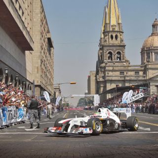 GUADALAJARA, JALISCO (27/FEB/2011).- En una exhibición que cumplió con las expectativas y que reunió a más de 200 mil personas, según los cálculos del Gobierno estatal, Checo Pérez y su escudería de Fórmula Uno, Sauber Motorsport, se dieron gusto ayer impregnando de olor a gasolina y llanta quemada el Centro Histórico de Guadalajara.