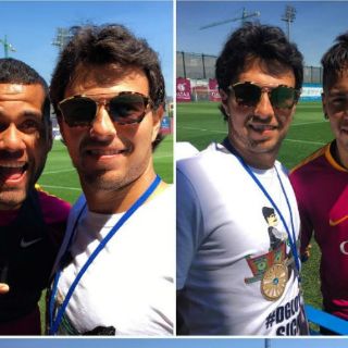 En su visita por las instalaciones de la Ciudad Deportiva, el “Checo” disfrutó de un rato de práctica culé, y posteriormente se tomó algunas selfies con jugadores como Dani Alves y Neymar.