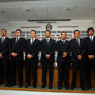 MÉXICO, D.F. (13/ENE/2011).- El estratega de la Selección mexicana José Manuel de la Torre presentó a su cuerpo técnico: Luis Fernando Tena, Eduardo de la Torre y Salvador Reyes, como auxiliares técnicos; Nicolás Navarro, entrenador de porteros; Carlos García, preparador físico; Juan Guzmán, encargado de video y José Enrique Vaca, gerente general de Selecciones menores.