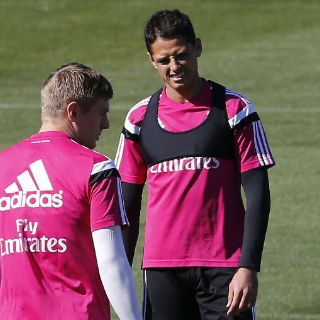 MADRID, ESPAÑA (14/MAR/2015).- El delantero mexicano Javier "Chicharito" Hernández fue convocado por el técnico del Real Madrid, Carlo Ancelotti, para enfrentar la jornada 27 de la Liga española ante el Levante, en espera de que decida ingresarlo también al terreno de juego.
